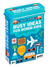 Travel Edition: Out of ideas for how to interest bored kids? Pick a card! This card pack in a handy tin includes 50 fun ideas to keep boredom at bay as kids are traveling. Choose cards with the PLANE icon for plane travel ideas, CAR icon for road trip ideas, and the SHOE icon for walking ideas.