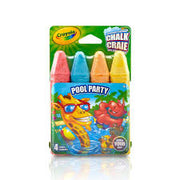 4 washable sidewalk chalks. Ideal for birthday parties or anytime. 6 different themes available: Very Berry, Pool Party, Fiesta, Spring fever, T-Rex Effects, and Petal Power.